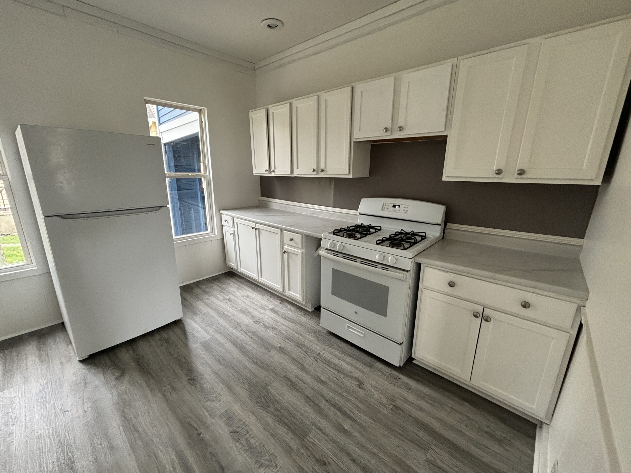 COMING SOON!! 633 North St #1 Kalamazoo, MI 49007. 2 Bedroom, 1 Bath (shower only). Recently remodeled duplex home. New vinyl plank flooring throughout. Front porch. No Laundry Hookups. No use of basement. Tenant responsible for: gas/electric & 1/2 water/sewer & snow removal. Garbage & mowing included.